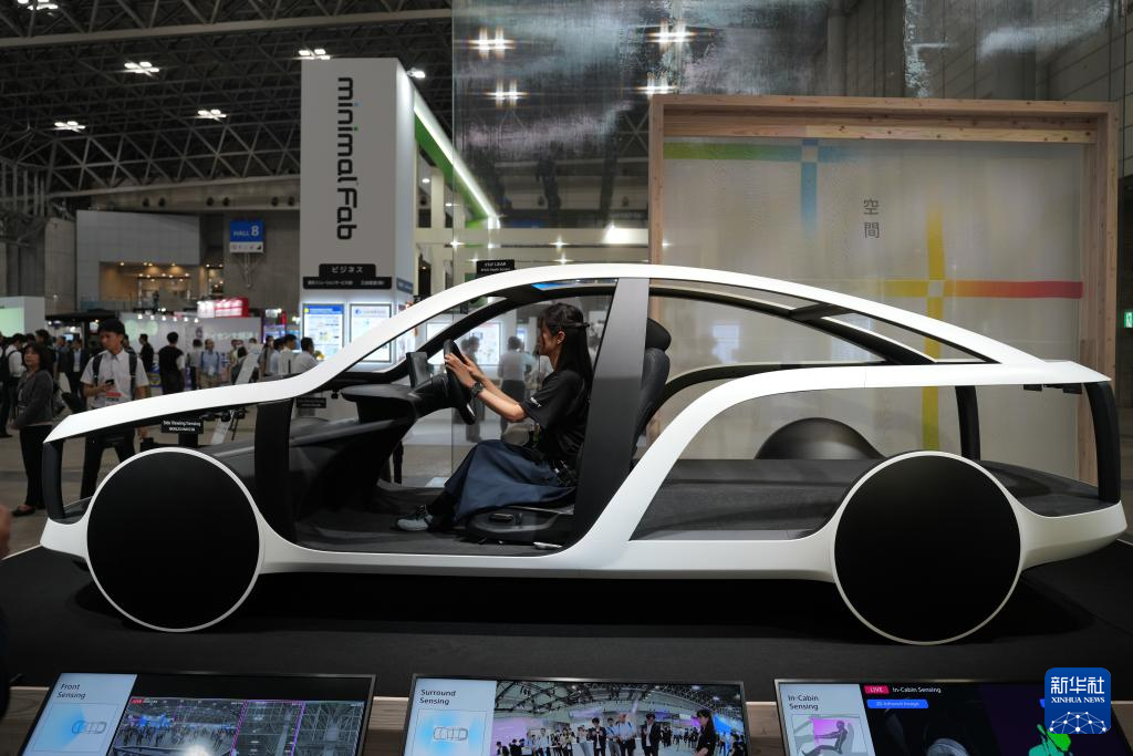 这是10月17日在日本千叶县举行的日本高新技术博览会上拍摄的,索尼公司展示的概念车模型。