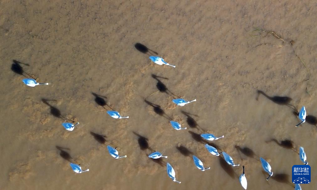 10月11日在山东黄河三角洲国家级自然保护区拍摄的野生鸟类(无人机照片)。