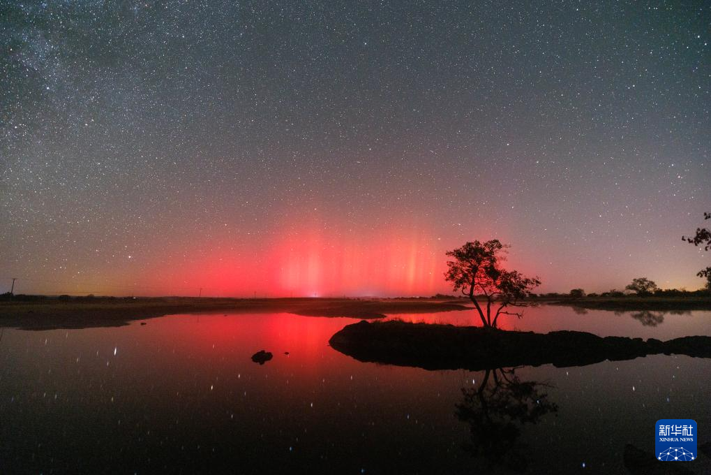 10月11日凌晨在黑龙江省牡丹江市镜泊湖熔岩台地拍摄的极光。