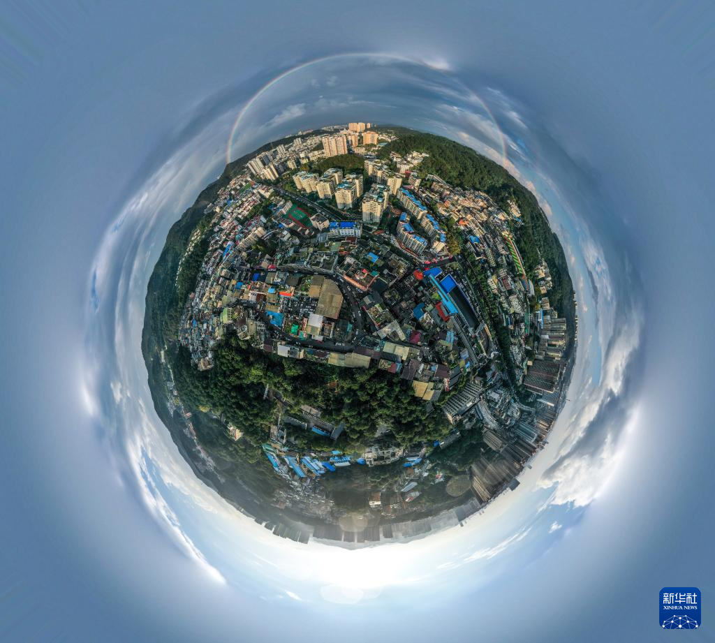 这是10月18日在贵州省贵阳市区拍摄的双彩虹景观(无人机全景照片)。
