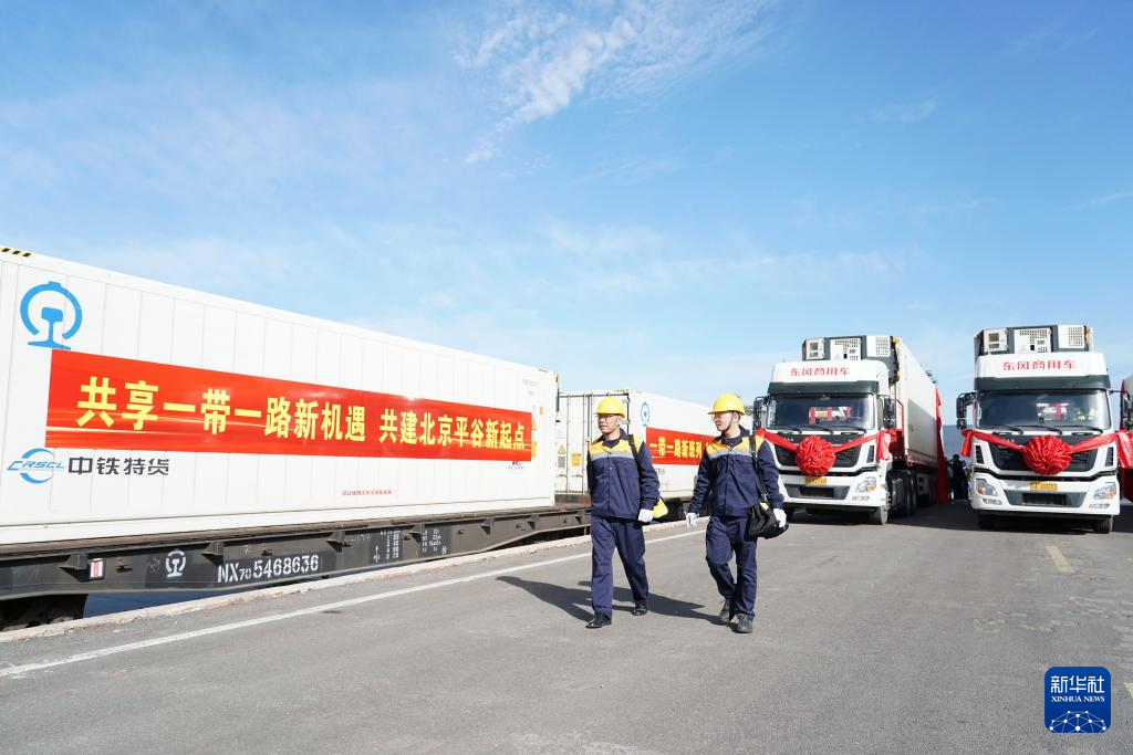 10月20日,中老铁路(万象—昆明—北京·平谷)国际冷链专列停靠在北京市平谷区京平综合物流枢纽。