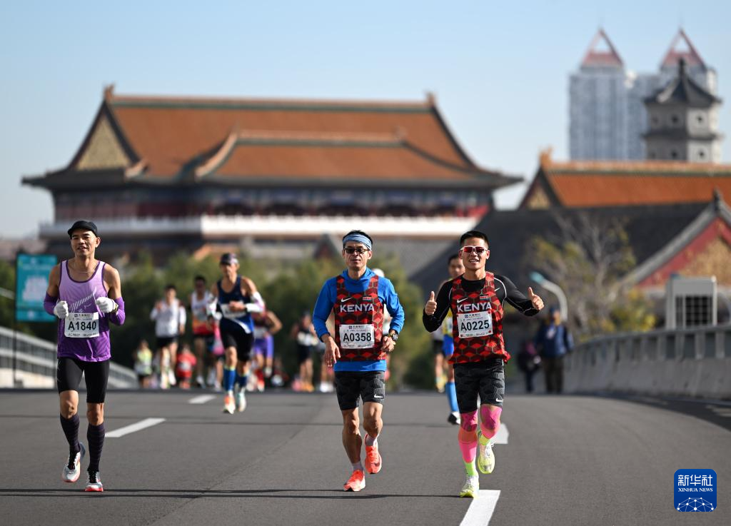 10月20日,半程马拉松参赛选手在比赛中冲线。