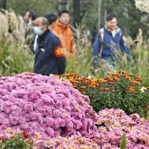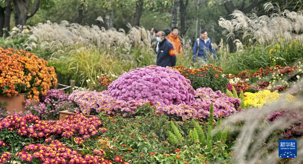 10月20日,市民游客在位于北京市的国家植物园内观赏盛开的秋菊。