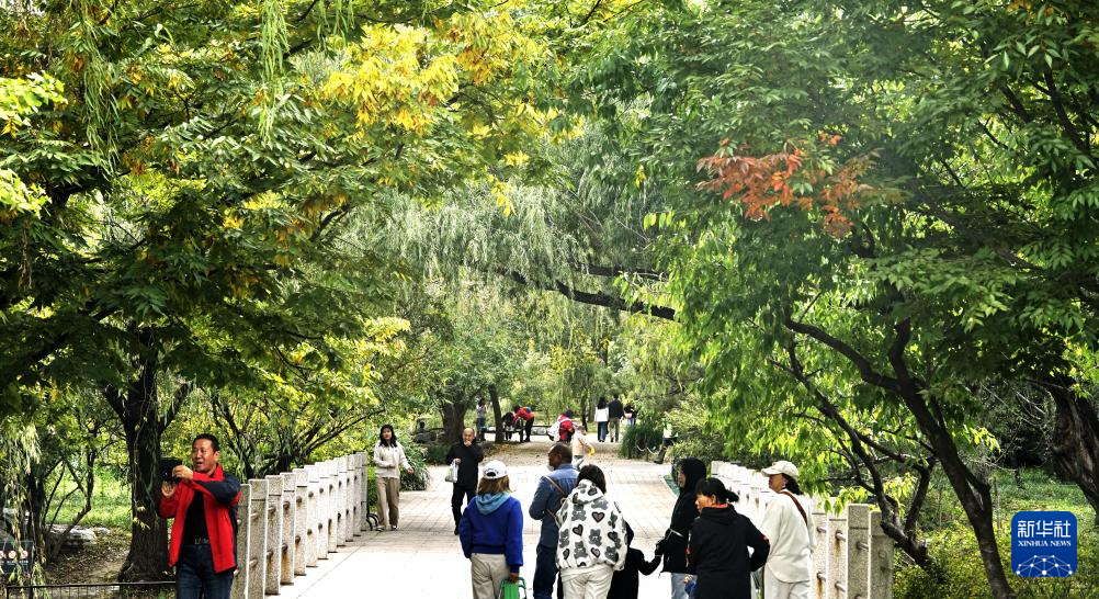 近日,大批市民游客来到位于北京西山脚下的国家植物园赏秋休闲。
