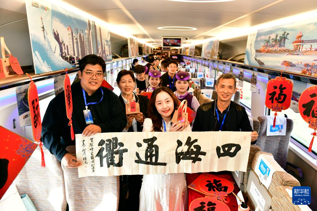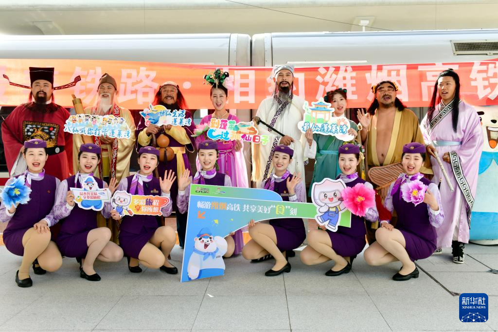 当日,新建潍坊至烟台高铁开通运营,山东高铁通车里程达3047公里,在复兴号首发列车上,烟台文旅部门还进行了文旅推介和非遗展示。