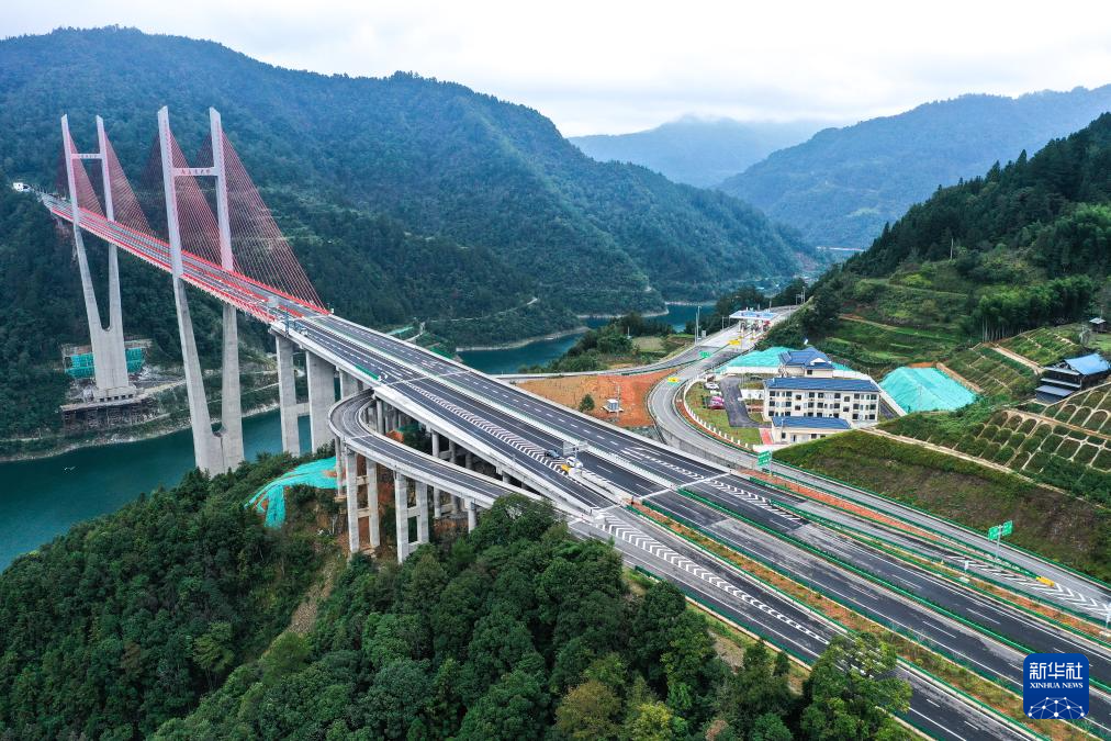 这是10月20日拍摄的贵州剑黎高速南孟溪大桥和南加互通(无人机照片)。
