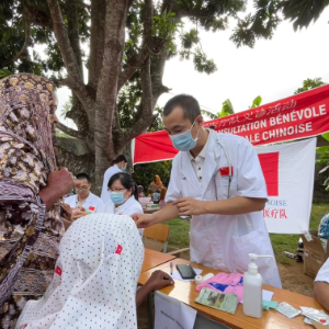 第16批中国援科摩罗医疗队21日在莫埃利岛开展义诊活动,并向当地医院捐赠药品。