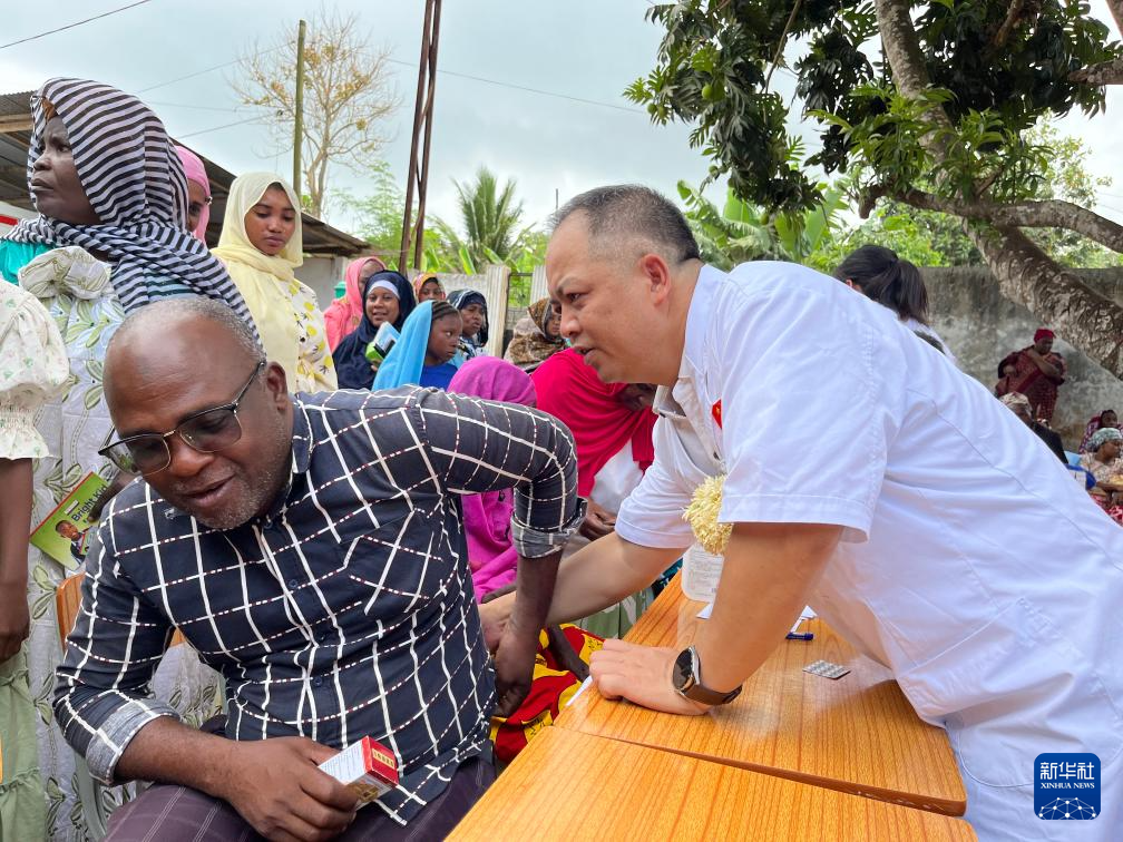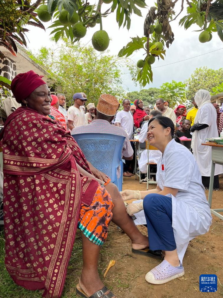 10月21日,在科摩罗莫埃利岛,中国医疗队队长包一涵为当地居民诊疗。