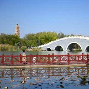 10月22日,人们在银川市凤凰公园游览。