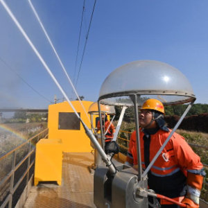 近日,中国铁路北京局集团有限公司天津供电段启动2024年接触网大型水冲洗绝缘清扫工作,利用“水炮车”对管内津山线、天津北环线等所有普速线路的2.7万余个绝缘部件进行水冲洗作业,保障列车供电安全。据了解,随着冬季临近,雪、雾、霾等恶劣天气增多,易造成铁路接触网绝缘部件脏污,发生污闪、雾闪故障,威胁铁路运输安全。