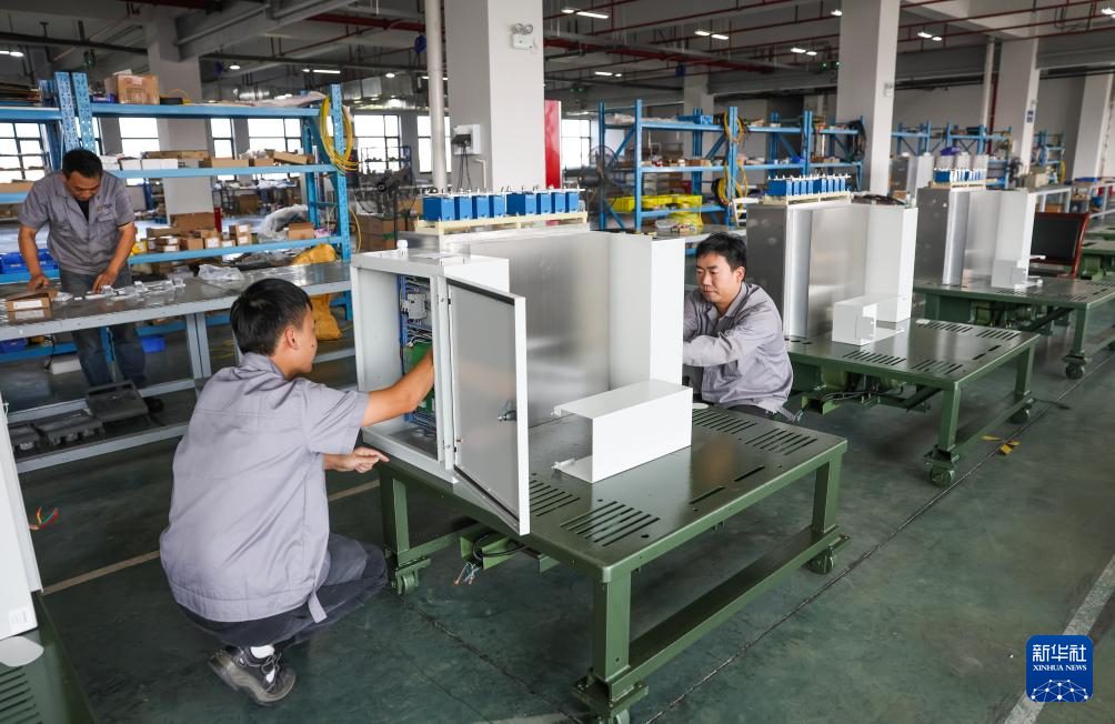 10月23日,在位于金华市金义新区的浙江大维高新技术股份有限公司生产线上,工人组装控制柜。浙江大维高新技术股份有限公司是一家研发绿色低碳化、数智化技术产品的高新技术企业。