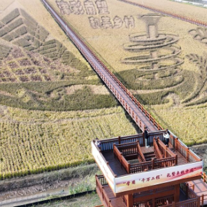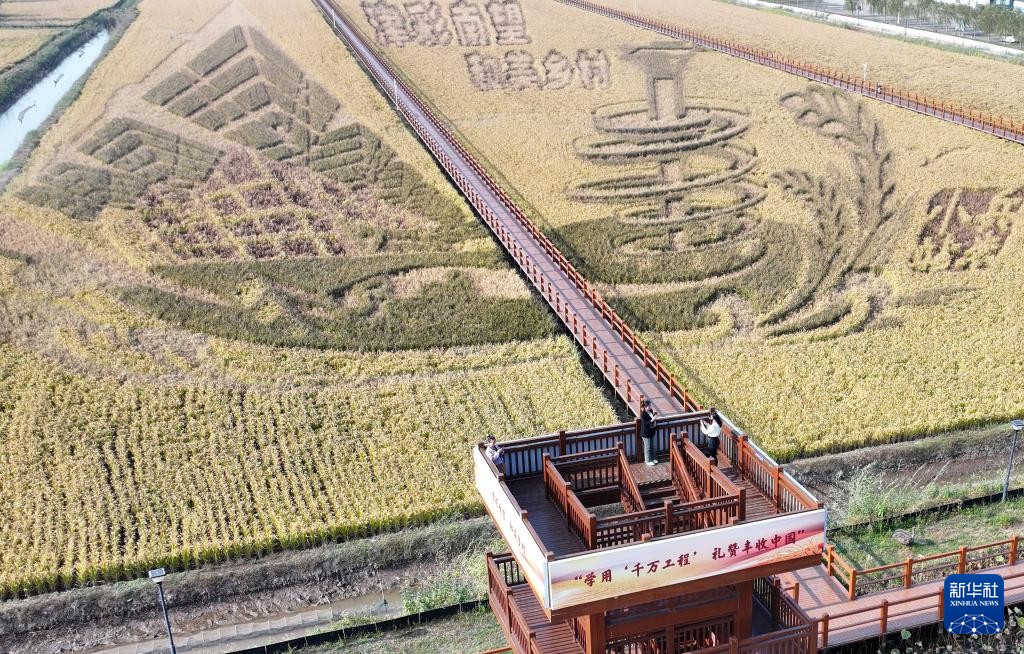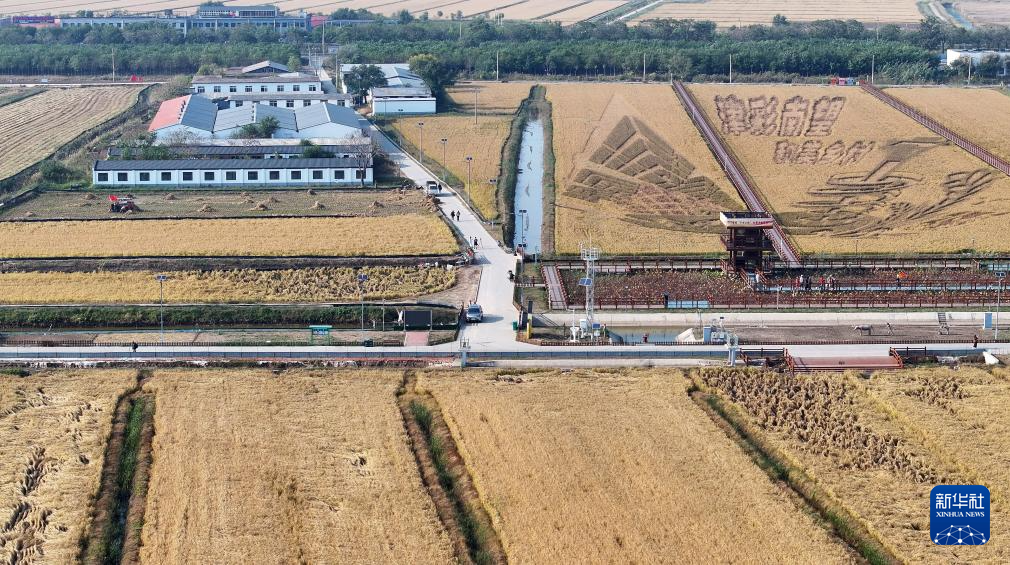 这是从空中拍摄的小站稻会馆村种植核心区一景(10月23日摄,无人机照片)。