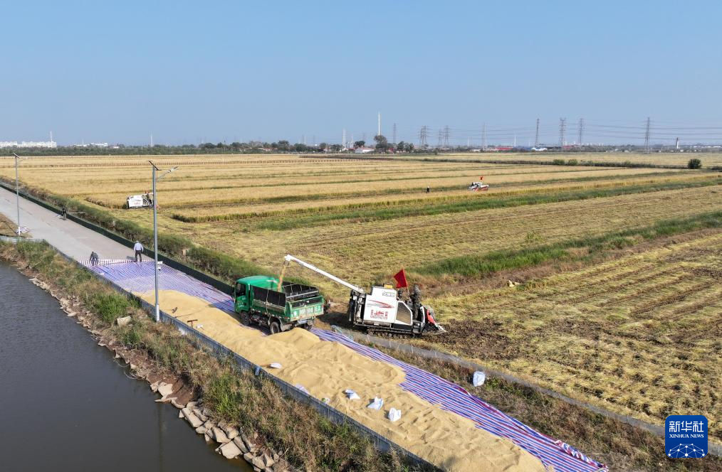 近期,天津市津南区小站镇会馆村的620亩小站稻进入收割季,田间地头一派繁忙景象。