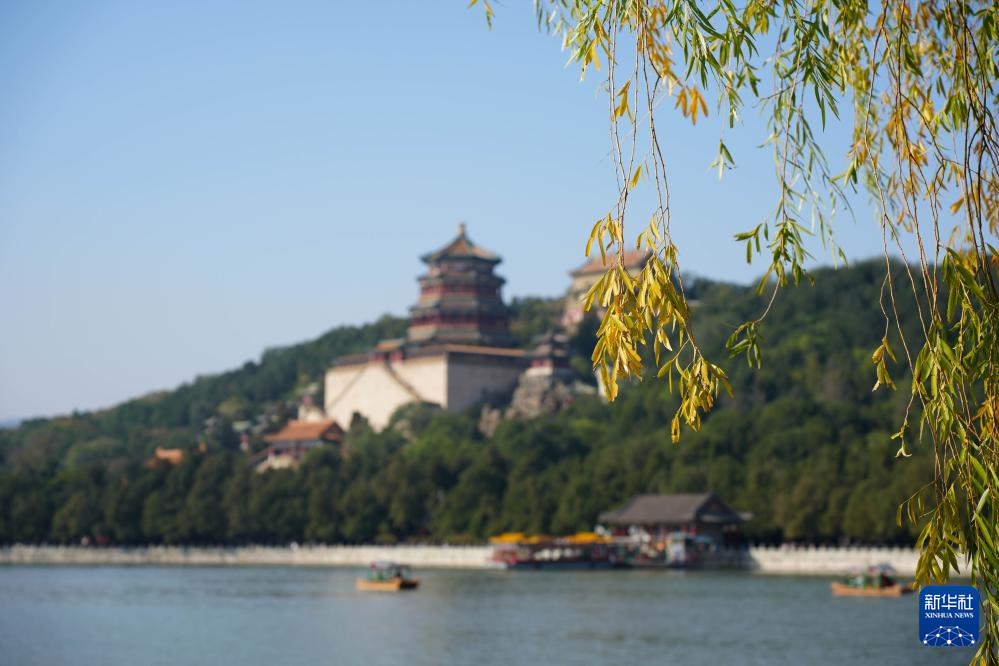 近日,北京颐和园秋色宜人,吸引游客前来赏秋。世界文化遗产颐和园是我国现存规模最大、保存最完好的皇家园林。