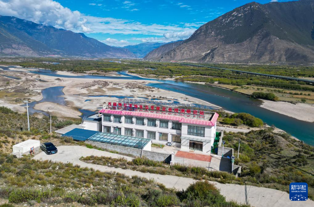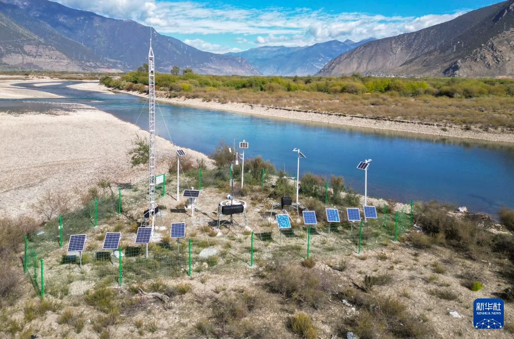 这是在林芝雅尼国家湿地公园尼洋河畔拍摄的生态监测系统(10月24日摄,无人机照片)。