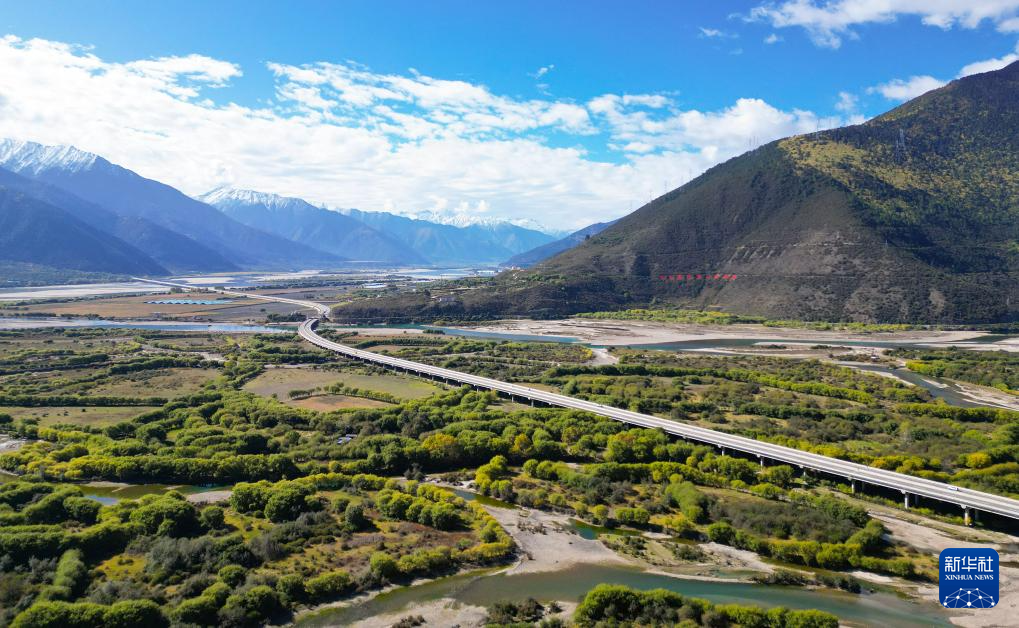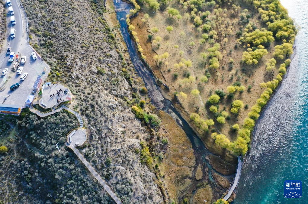 西藏林芝雅尼国家湿地公园内的观景台和步行栈道(10月24日摄,无人机照片)。