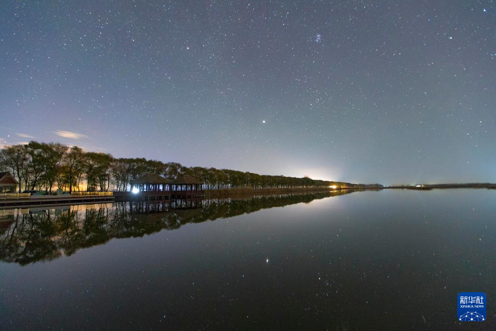 星空下的的富锦国家湿地公园(10月24日摄)。