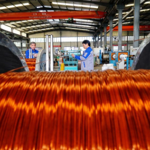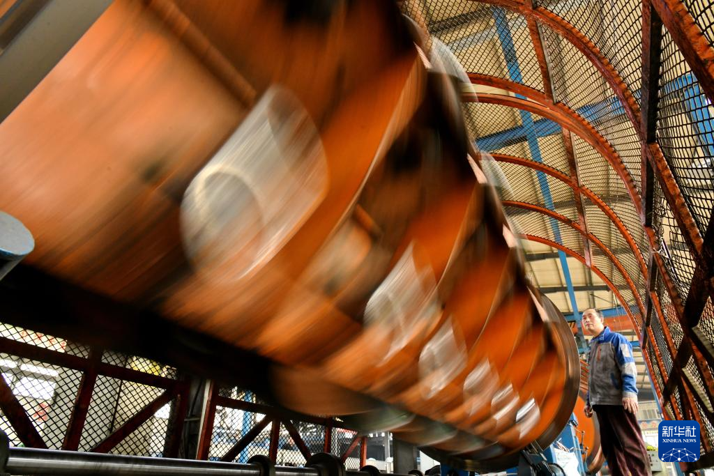 10月25日,河北省河间市常丰线缆有限公司工人在生产线上工作。
