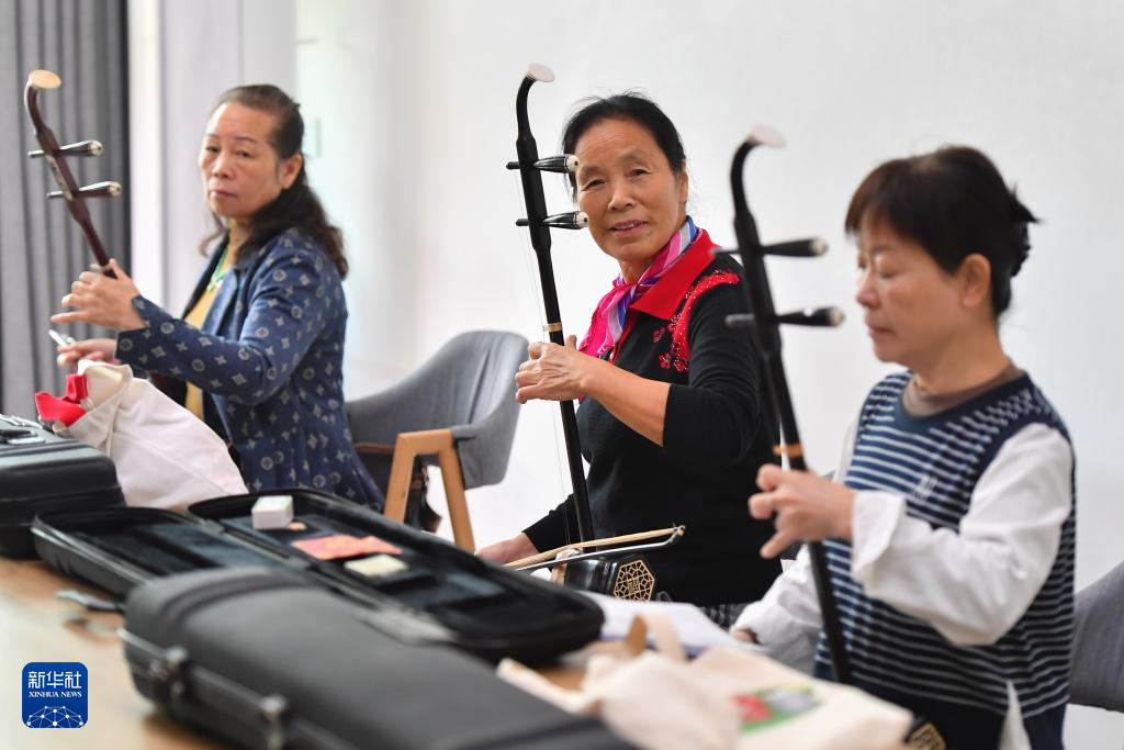 10月25日,在湘潭市雨湖区城正街街道三义井社区,学员在二胡课上练习。