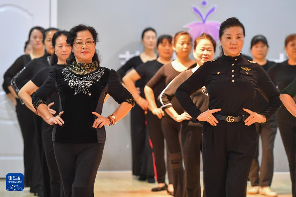 10月25日,在湘潭市雨湖区昭潭街道砂子岭社区,学员在形体课上练习。