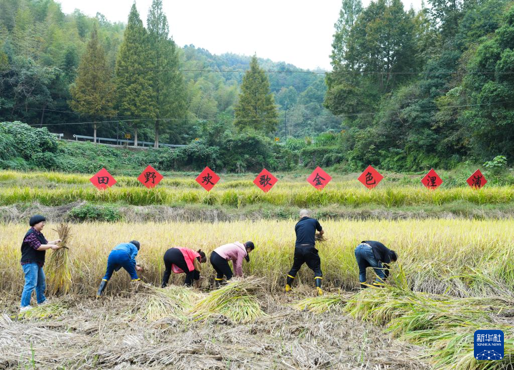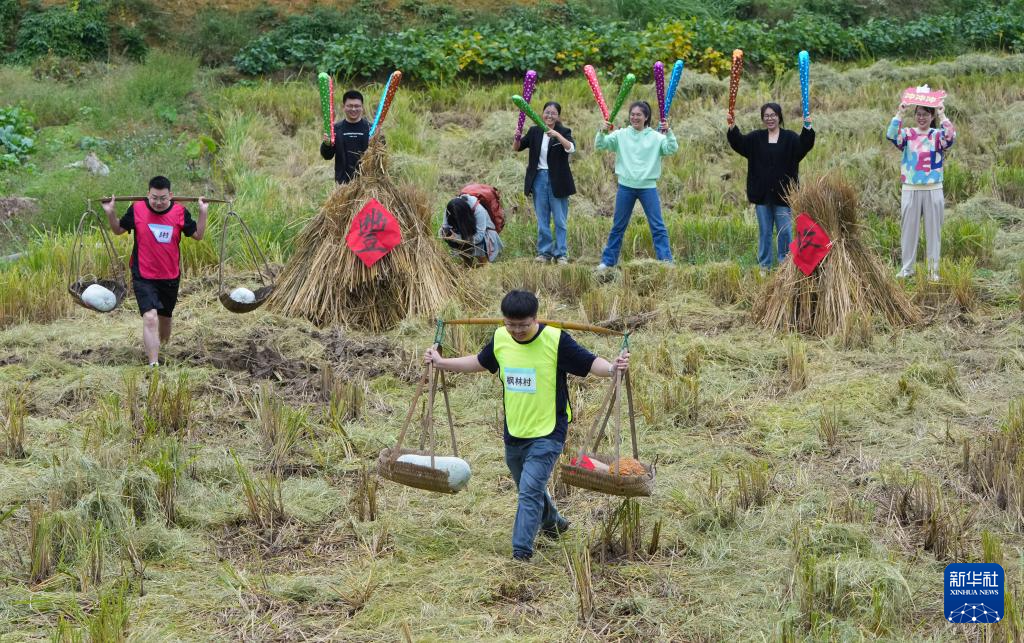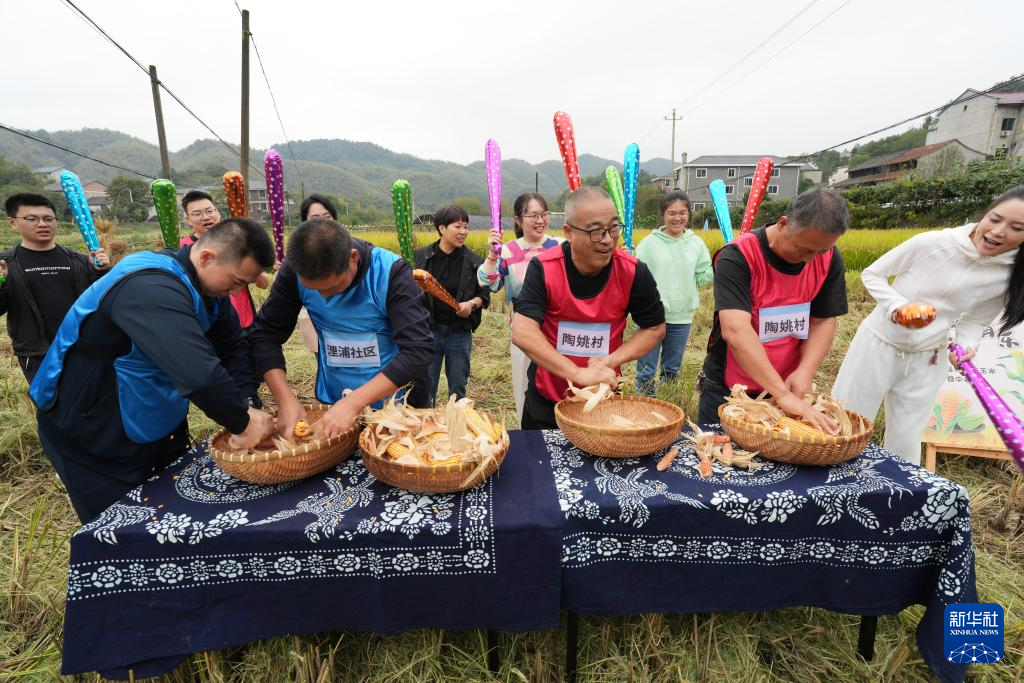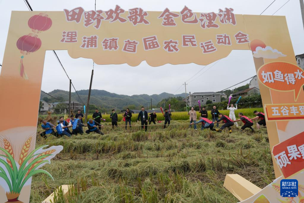 当日,一场别开生面的农民运动会在浙江省诸暨市浬浦镇举办,村民在金色的稻田间进行割稻、拔河、玉米消消乐等比赛,尽享丰收喜悦。
