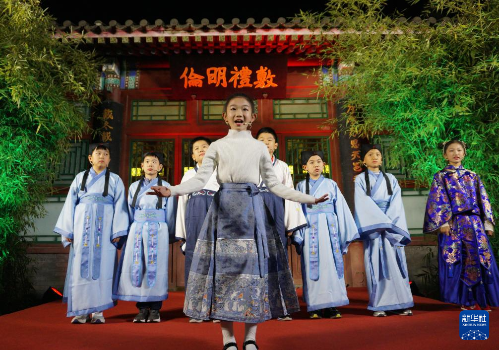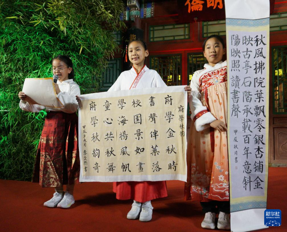 当日,北京市东城区府学胡同小学举行主题为“秋歌悠扬诗意浓,金声远播学府韵”的秋日诗会活动。学生们在活动中以诗为曲,以文为歌,在弘扬传统文化的同时感受秋天的韵律和美感。