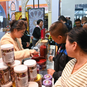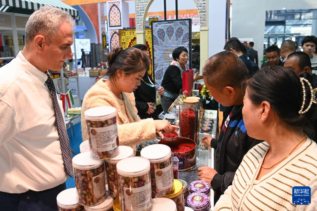 10月25日,观众在杨凌农高会了解伊朗藏红花。