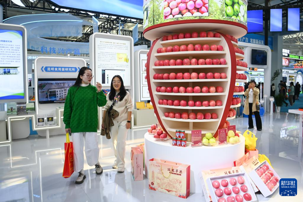 10月25日,观众在杨凌农高会了解农产品。