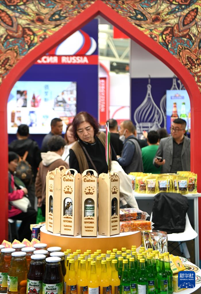 10月25日,观众在杨凌农高会了解塔吉克斯坦农产品。