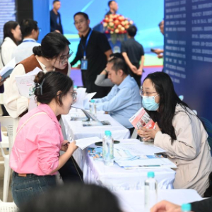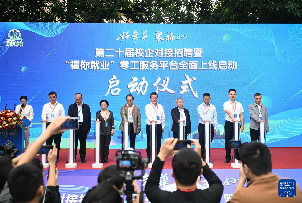 这是“好年华 聚福州”第二十届校企对接招聘暨“福你就业”零工服务平台全面上线启动仪式现场(10月25日摄)。