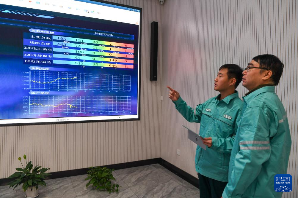 10月24日,在国网吉林供电公司设备运维集控中心,电能质量管理员李欣育(左)与同事曲巍利用能量管理系统监控设备运行情况。