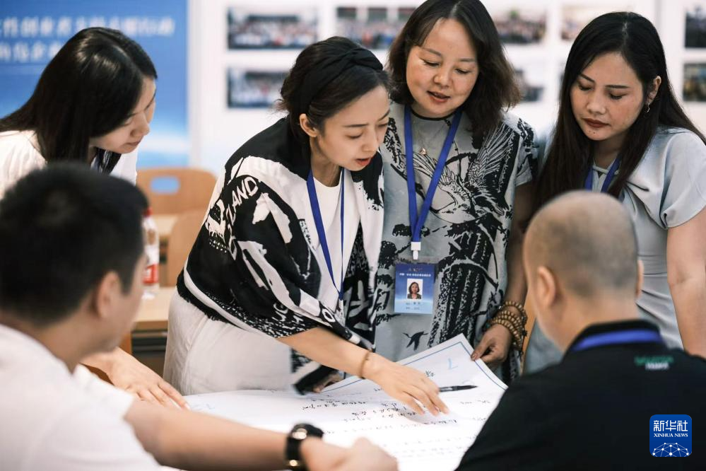 在鱼凫企业家成长营培训课上,学员进行讨论交流(9月12日摄)。