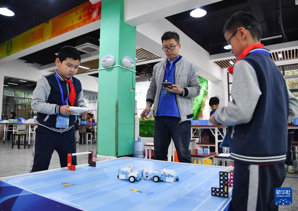 当日,西安市新城区举办学生信息素养提升实践活动,辖区约700名中小学生参加机器人足球对抗、科学实验制作、车辆模型挑战等五项比赛,在相互交流中锻炼动手能力,提升信息素养,感受科学魅力。