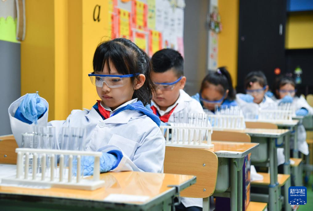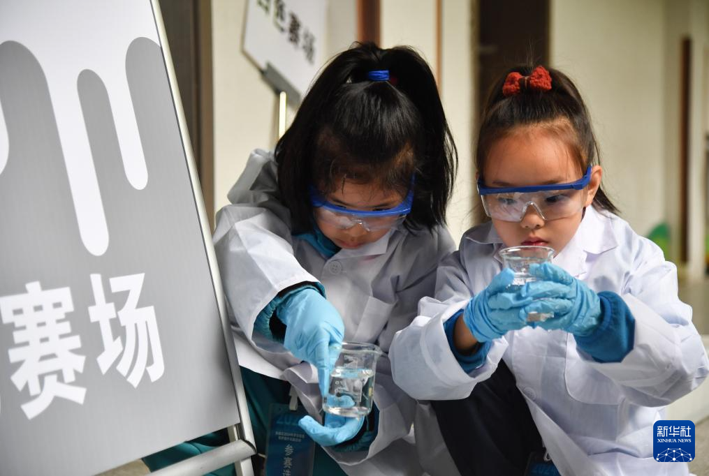 10月26日,学生在西安市新城区太华路小学参加科学实验制作比赛。