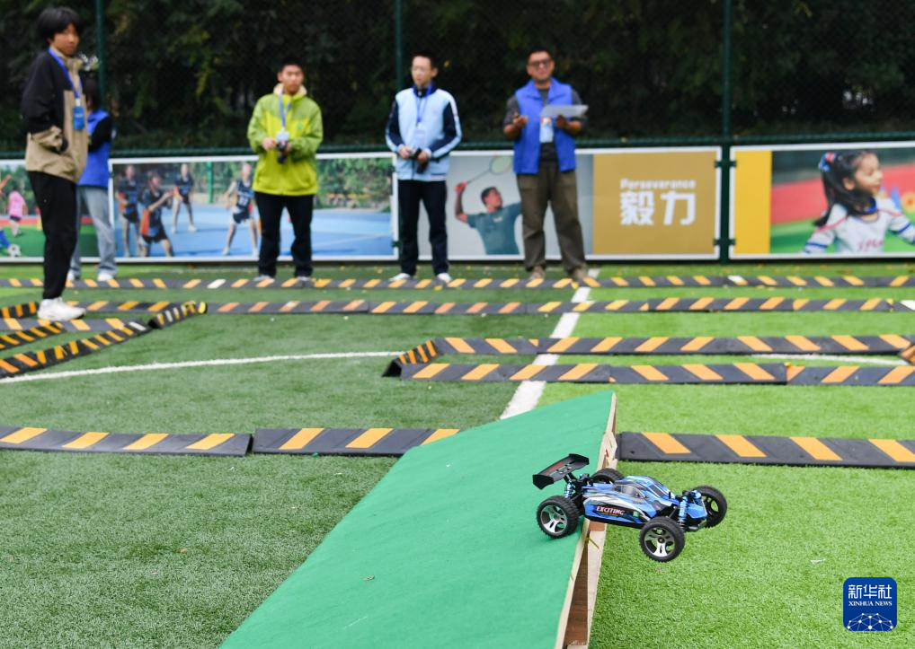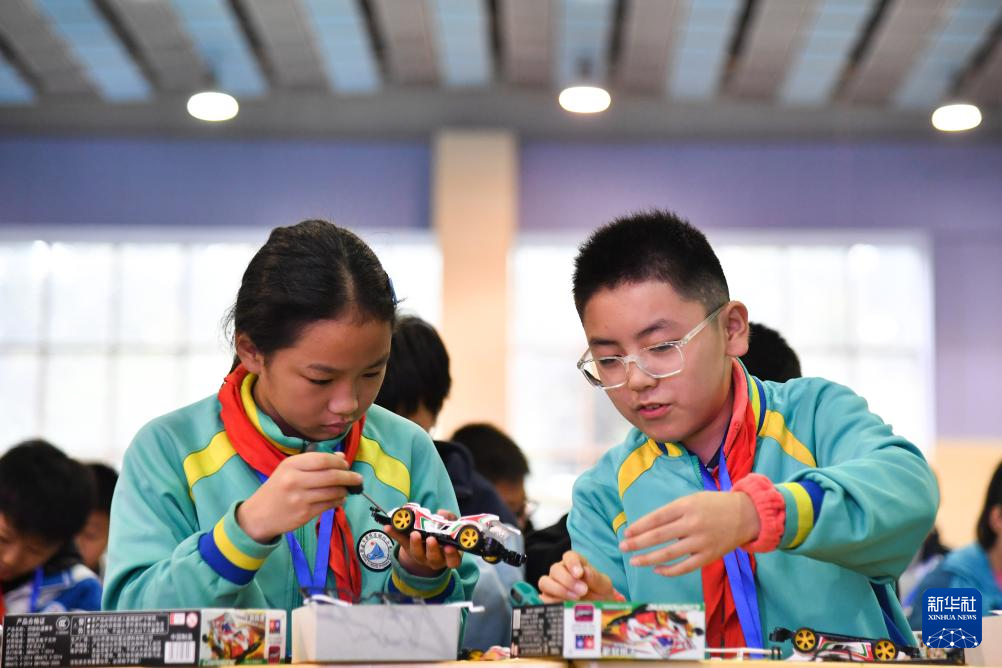 10月26日,学生在西安市新城区太华路小学参加车辆模型挑战赛。