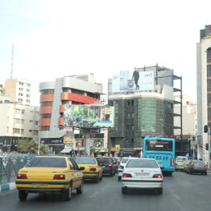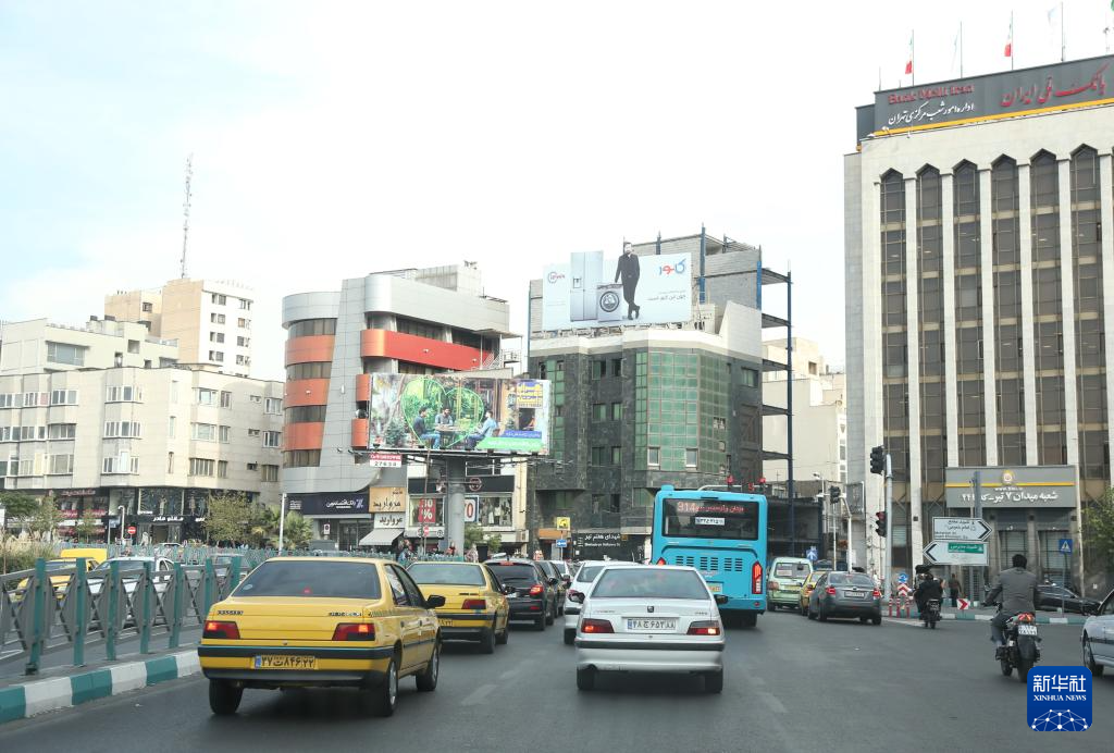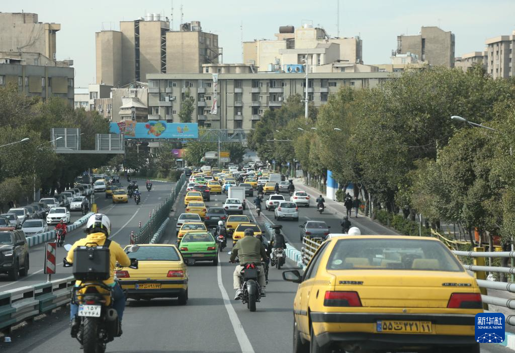 10月26日,车辆行驶在伊朗首都德黑兰街头。