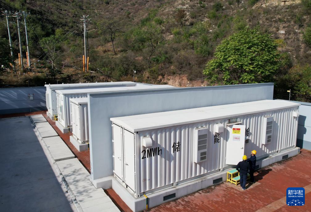 10月26日,工人在河北省涉县合漳乡10兆瓦级“水光储”智能微电网示范工程项目中的储能区巡检。