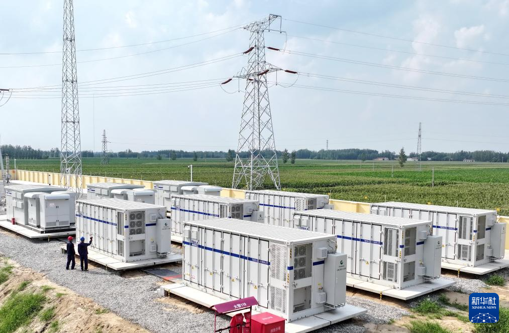 8月23日,工人在位于河北省故城县百兆瓦级储能电站巡检。