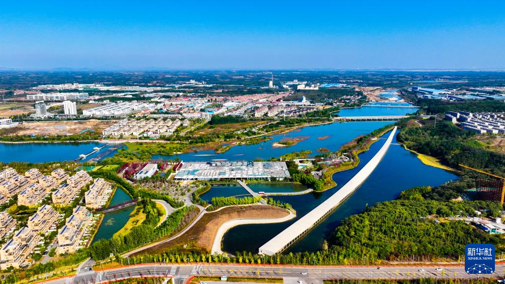 10月23日拍摄的日照市五莲县白鹭湾小镇景色(无人机照片)。