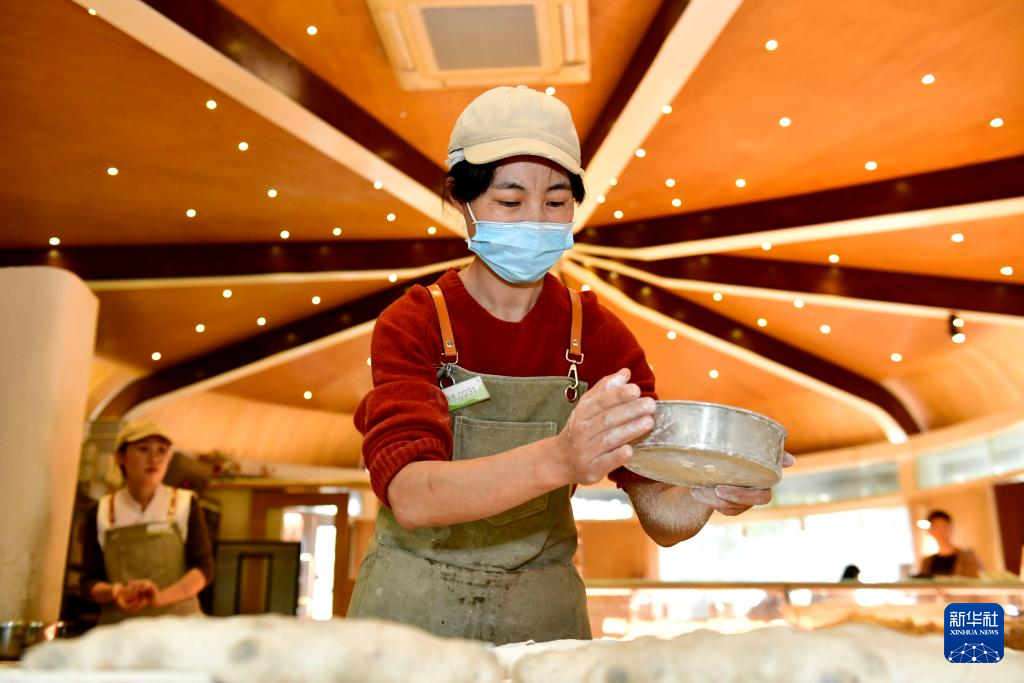 10月23日,在日照市五莲县白鹭湾小镇面包房,面包师舒熹在制作面包。2014年,在外地从事平面设计的舒熹辞职来到白鹭湾小镇,经过培训成为一名面包师。