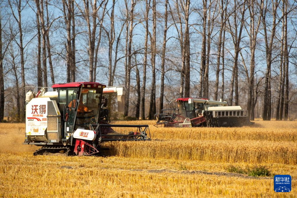 “以前都是人工收割,费时费力,还需要看天气干活,现在换上了机器,人停机不停,抢粮抢时效,粮食收获比过去又快又多。”张文波说,从传统的人工模式到人退机进的现代化机械模式,机器改变了从种到收的全流程,提高了效率,增加了丰果。