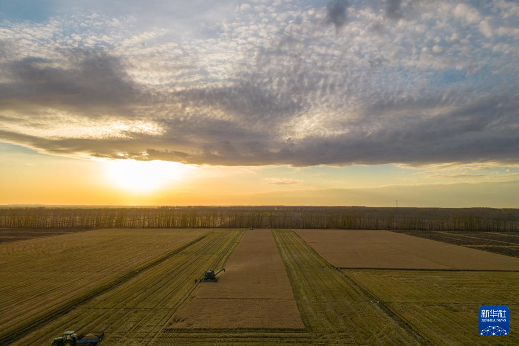 深秋时节,我国东北地区三江平原广袤的黑土地上,金色的稻穗随风摇曳,汇成一片金色的“稻海”。从清晨到日暮,在农机的轰鸣中,在勤劳的双手间,光影流转,稻浪飘香。