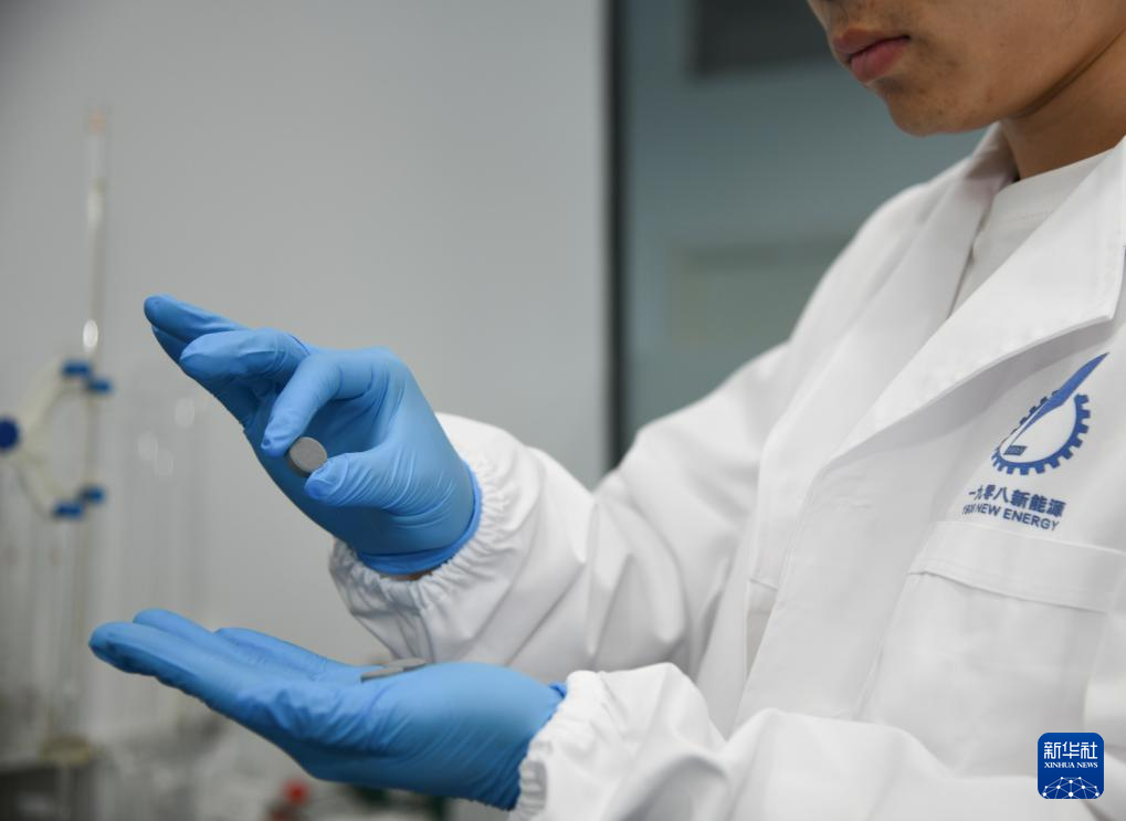 7月10日,西安一九零八新能源科技有限公司科研人员展示由其公司研发的储氢材料。