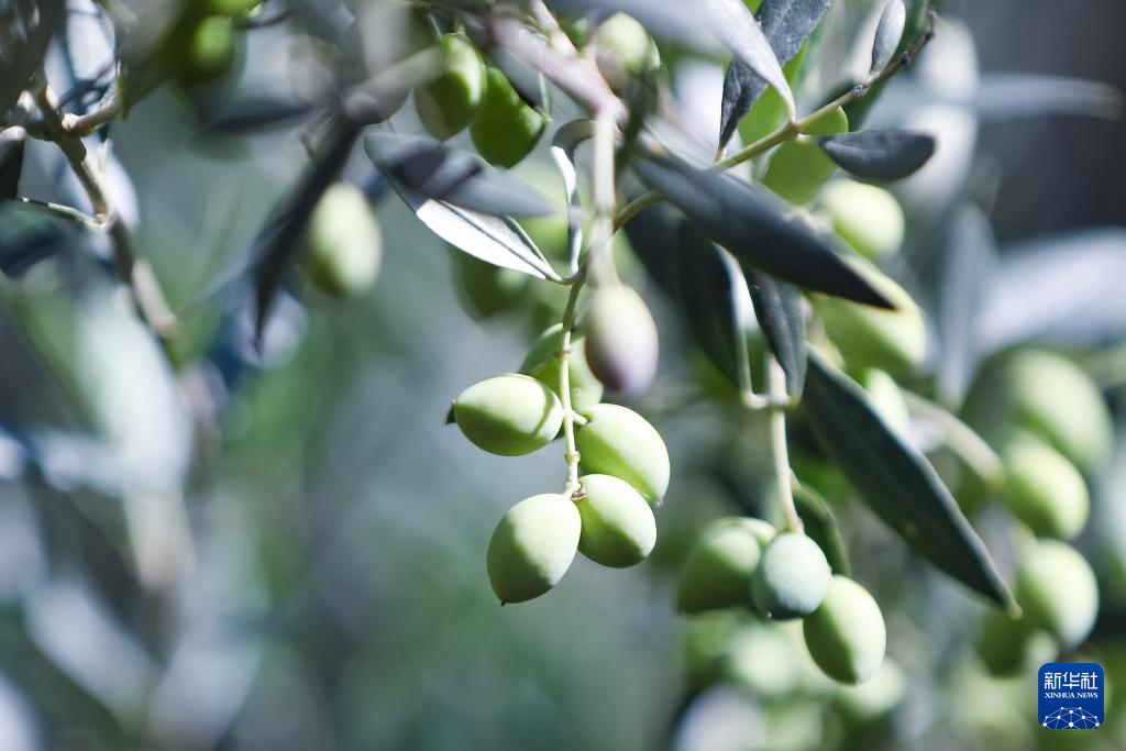 10月28日,在位于甘肃省陇南市武都区的陇南市经济林研究院油橄榄研究所大堡油橄榄试验园,一株奇迹油橄榄树(原产地希腊)枝头挂满果实。
