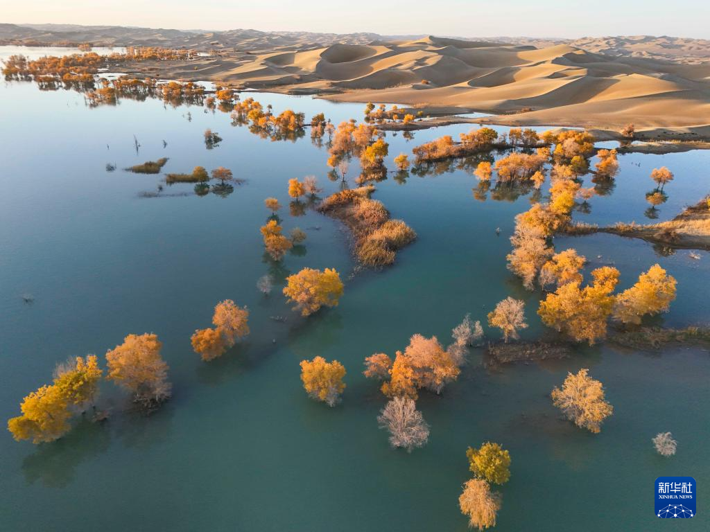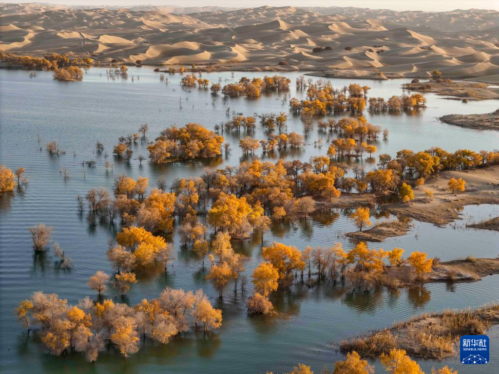 新疆葫芦岛景区内胡杨秋景(10月25日摄,无人机照片)。