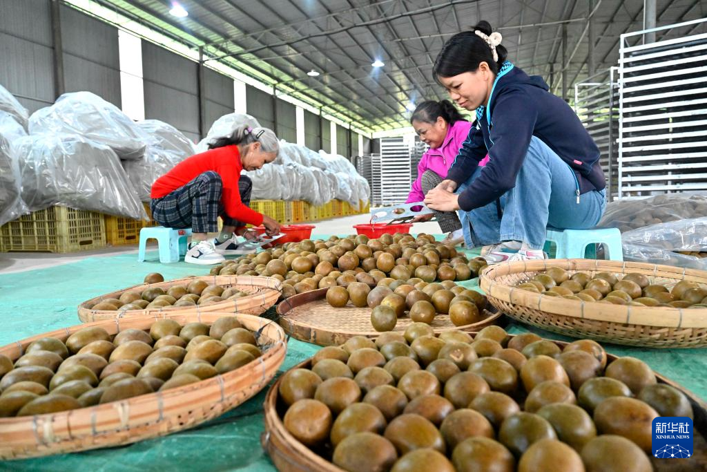10月29日,在广西柳州市鹿寨县拉沟乡,工人在收购点里分拣罗汉果。