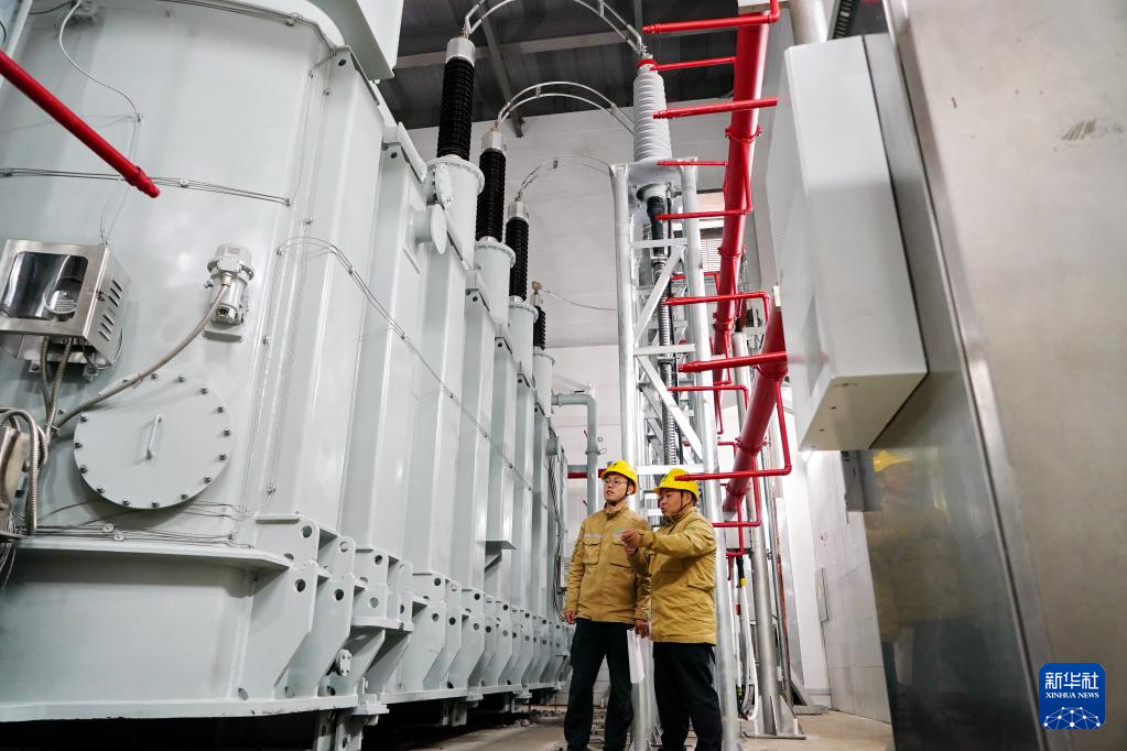 10月29日,国网雄安新区供电公司运维检修中心工作人员在王阳变电站主变室内巡检。