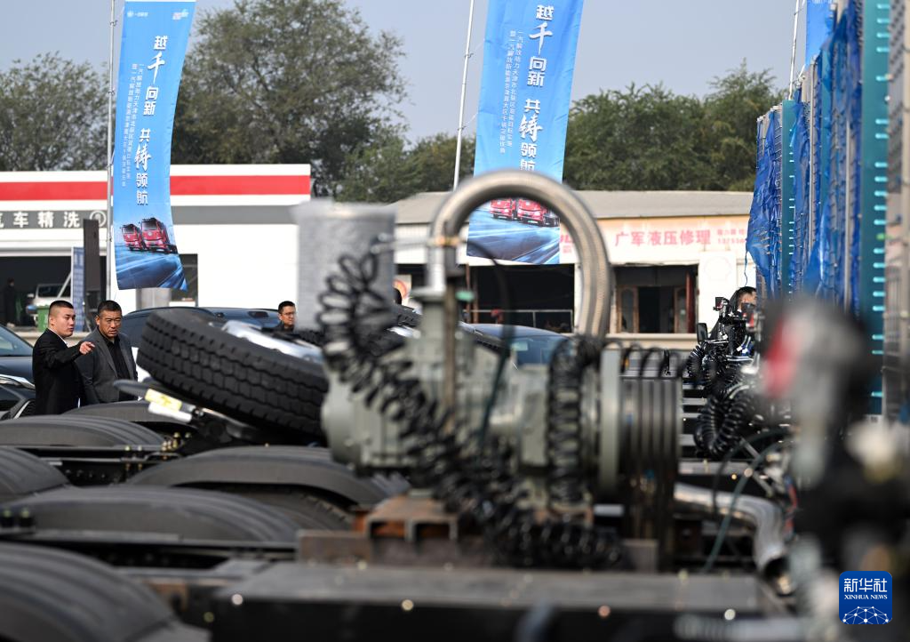 10月29日,参加活动的人员在参观新能源重卡。