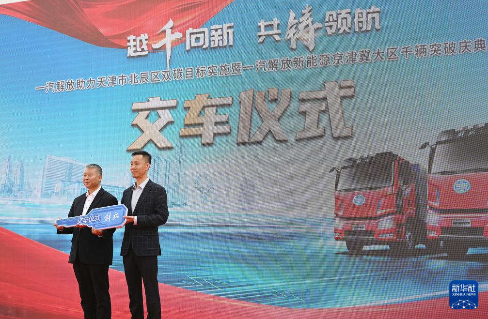 当日,一汽解放新能源京津冀大区“千辆突破庆典”交车仪式在天津市北辰区西堤头镇举行。近年来,天津市北辰区积极推动物流及重点运输行业由传统燃油车辆向新能源车辆转变,持续加大新能源货运车辆推广力度,构建绿色运输发展新格局。