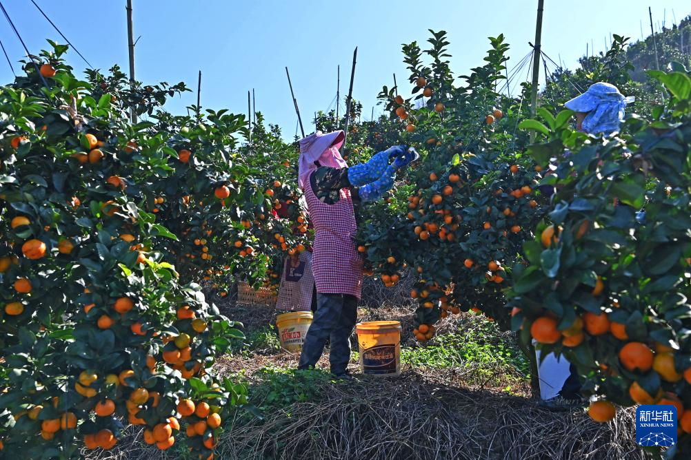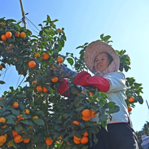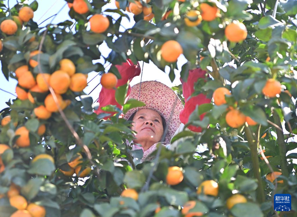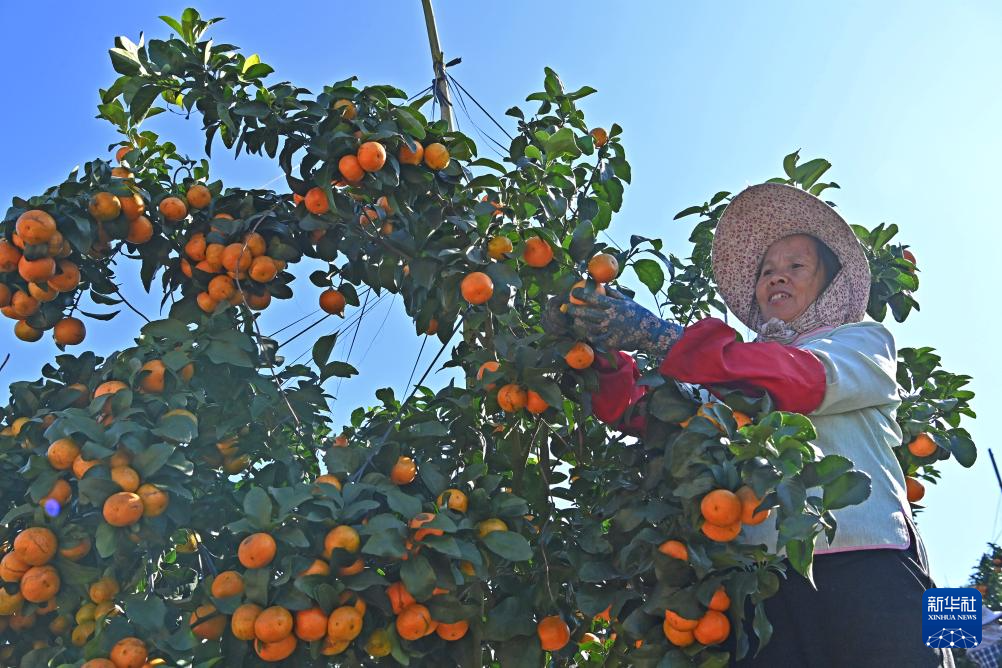 10月30日,村民在西林县那劳镇洞坚村采摘金秋沙糖桔。